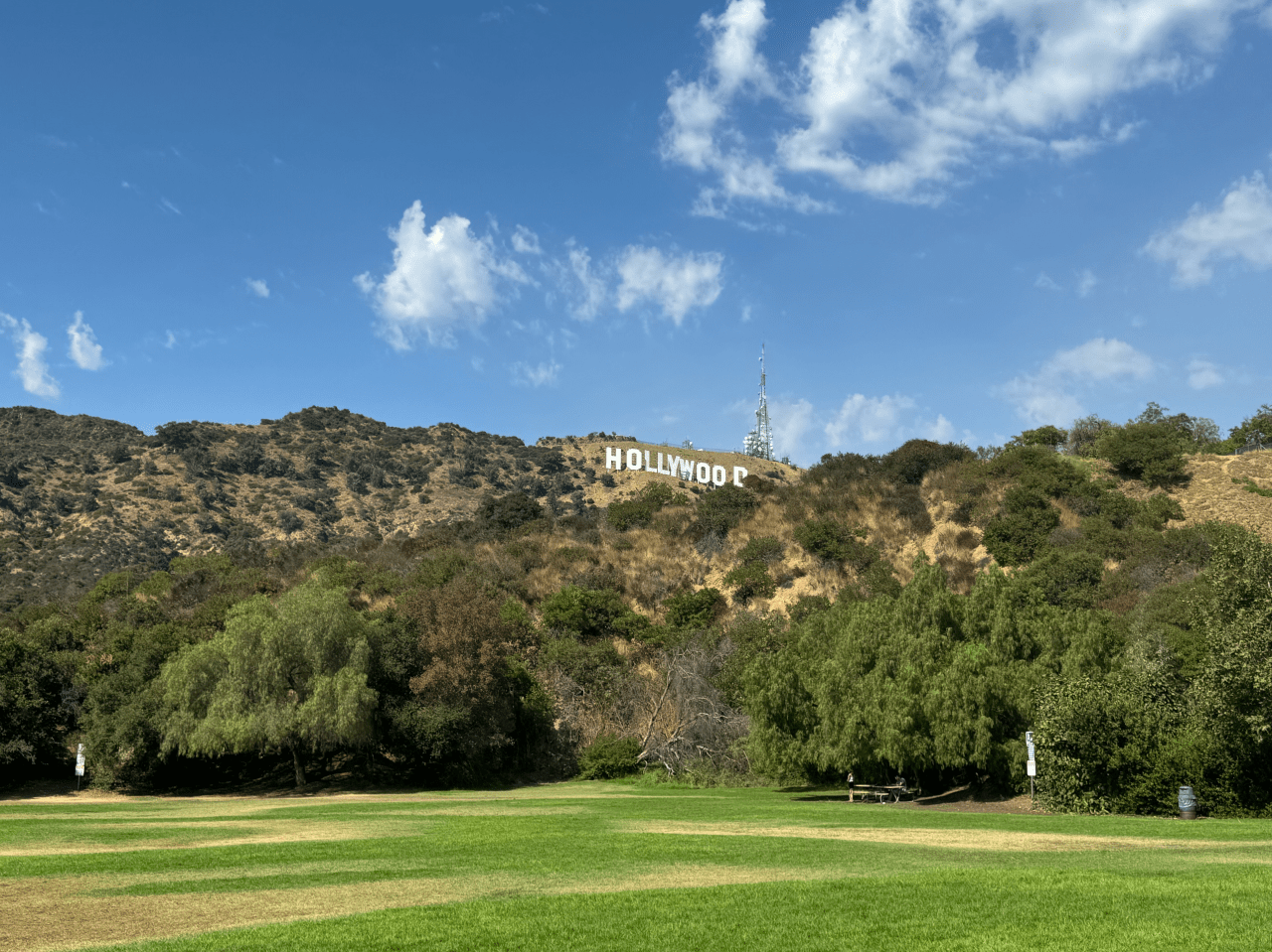 Es el icono de Los Ángeles. Nosotros fuimos a Lake Hollywood Park, ofrece una vista más cercana del cartel de Hollywood sin tener que hacer una caminata larga. Es un lugar perfecto para hacer un picnic, jugar en el parque o simplemente disfrutar de las vistas. Puedes estacionarte cerca del parque, y allí mismo, puedes hacerte una magníficas fotos con el cartel.